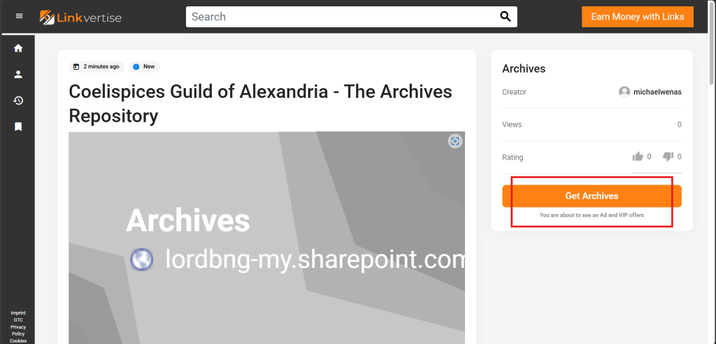 2. You will be redirected to a Linkvertise page. Click the get repository button.